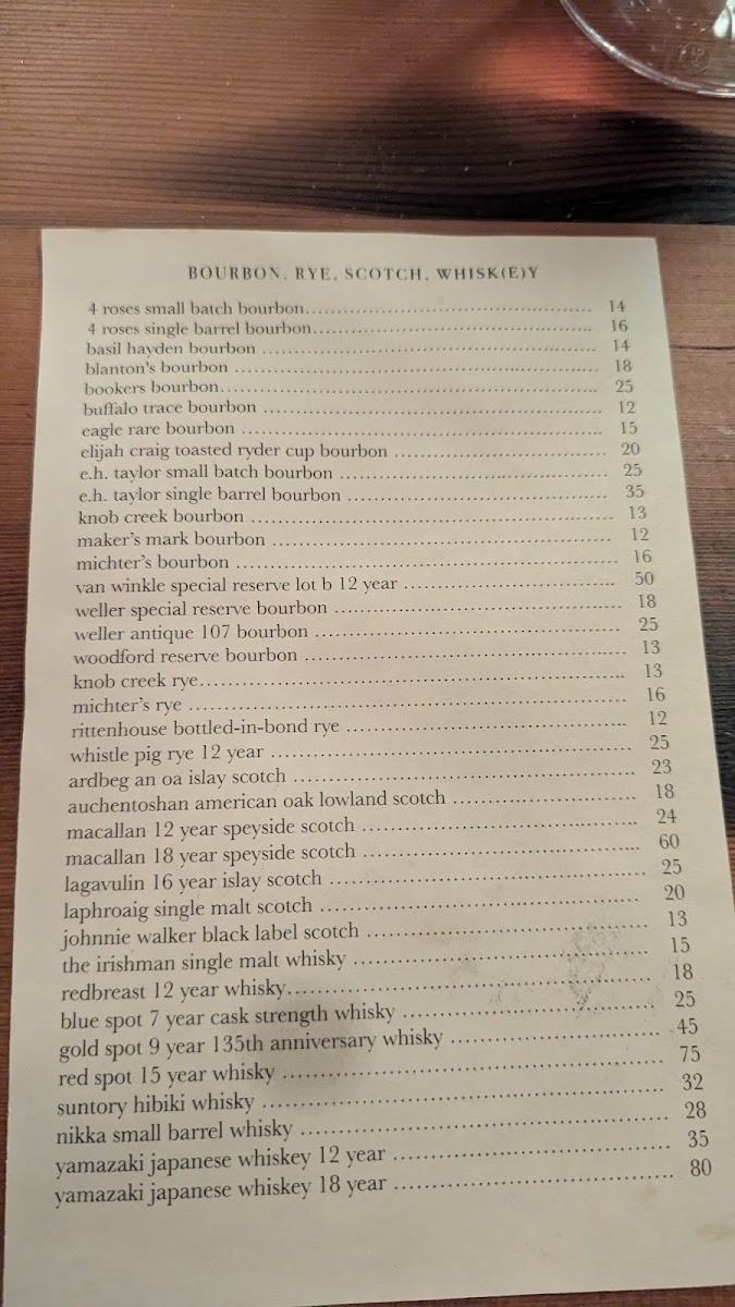 The restaurant also boasts an impressive selection of Bourbon, Rye, Scotch, and Whisk(E)Y options, including 4 Roses Small Batch Bourbon, 4 Roses Single Barrel Bourbon, and the smooth Basil Hayden Bourbon. For something a bit more premium, the rich flavors of Blanton's Bourbon or the bold notes of Bookers Bourbon are sure to impress whiskey enthusiasts.