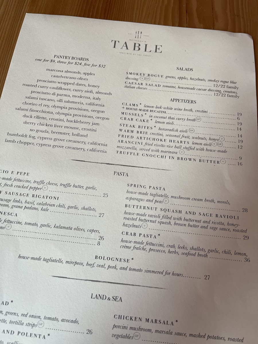 Bethany's Table in Portland offers a well-curated menu that combines fresh, local ingredients with a variety of dishes catering to all tastes. Starting with the Salads, guests can enjoy the classic Caesar, the smoky flavors of Smokey Rogue, or the earthy sweetness of the Roasted Beet Salad and Caprese, offering a refreshing balance to the meal.
